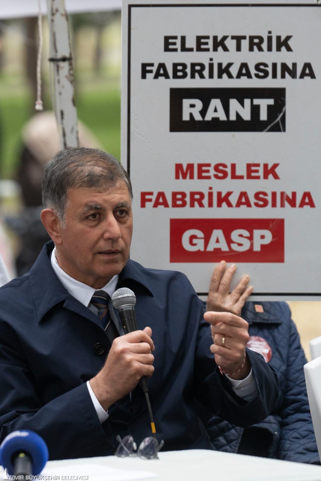 İzmir Büyükşehir Belediye Başkanı Dr. Cemil Tugay, Meslek Fabrikası nöbetinin 11’inci gününde düzenlenen basın toplantısında konuştu.…