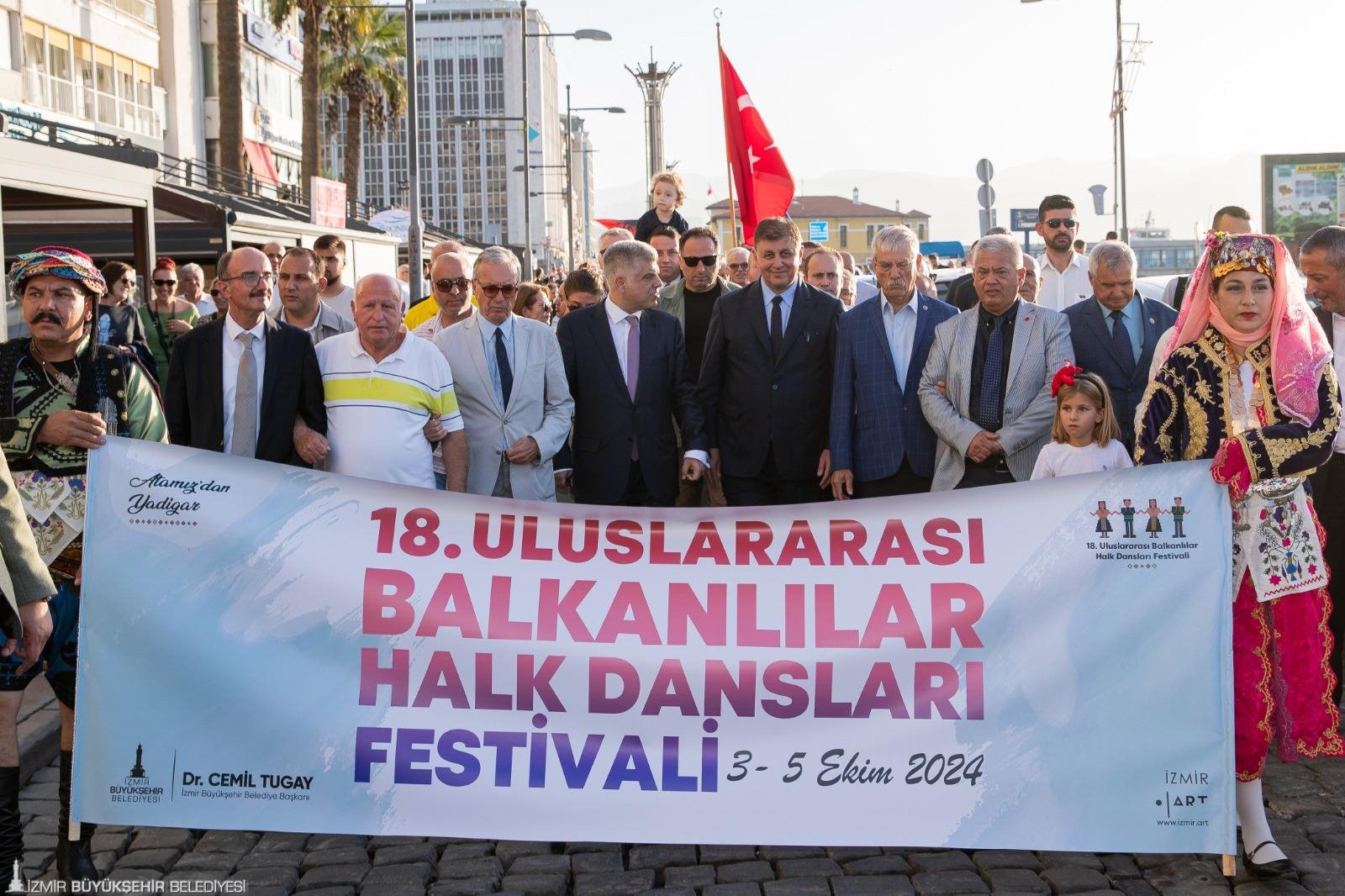 İzmir Büyükşehir Belediyesi tarafından bu yıl 18’incisi düzenlenen Uluslararası Balkanlılar Halk Dansları Festivali, Cumhuriyet Meydanı’nda düzenlenen törenle başladı. Törene İzmir Büyükşehir Belediye Başkanı Dr. Cemil Tugay, İzmir Büyükşehir Belediyesi Başkan Vekili Dr. Zafer Levent Yıldır, İzmir Büyükşehir Belediyesi Meclis Başkan Vekili Altan İnanç’ın yanı sıra konuk ülkelerden gelen katılımcılar ve İzmirliler katıldı.