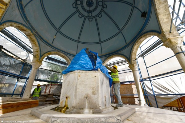 İzmir Büyükşehir Belediyesi, Kemeraltı’ndaki Ali Paşa Şadırvanı’nın restorasyon çalışmalarını başlattı. 1828 yılında Şam Valisi Hacı Salih Paşa tarafından yaptırılan ve 1894’teki yenileme çalışması sonrasında özgün yapısı günümüze kadar korunan Ali Paşa Şadırvanı’nın alem kubbesi, onarım nedeniyle söküldü. Kubbe, onarımın ardından tekrar monte edilecek.