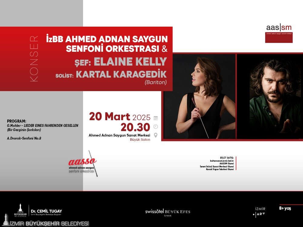 14 Mart Cuma günü saat 20.00’de Büyük Salon’da İzmir Devlet Senfoni Orkestrası’nın Polonya–Türkiye Dostluk Konseri olacak. Michal Nesterowicz şefliğindeki konserin solisti ise Gökhan Aybulus. 16 Mart Pazar günü saat 19.00’da ise İzmir Büyükşehir Belediyesi Çoksesli Kadınlar Korosu Konseri Büyük Salon’da ücretsiz olacak. 18 Mart Salı günü saat 20.30’da Büyük Salon’da Phaeton Piano Trio Konseri var. Friedemannn Eichhorn kemanda, Peter Hörr çelloda ve Florian Uhlig piyanoda yer alacak. Olten Filarmoni Orkestrası Konseri ise 19 Mart Çarşamba günü saat 20.30’da Büyük Salon’da düzenlenecek. Cem Mansur şefliğindeki konserde solist ise Julien Beaudiment olacak.