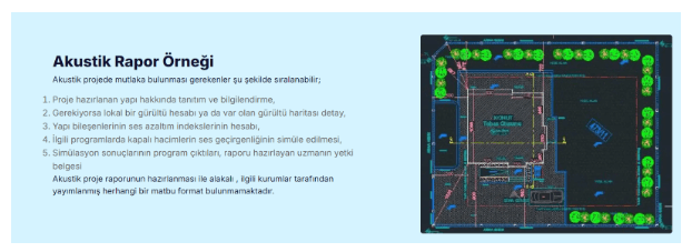 Akustik rapor ile akustik proje belgelerinin birbirine uyumlu olması, belediye onay süreci açısından zorunludur. Raporda belirlenen yalıtım değerlerinin proje detaylarında eksiksiz şekilde gösterilmesi gerekir. Aksi takdirde belediye tarafından red cevabı alınabilir ve süreç uzar. Bu nedenle akustik proje ve rapor birlikte ele alınmalıdır. Profesyonel akustik firmaları, her iki süreci de aynı anda yürüterek zamandan tasarruf sağlar.