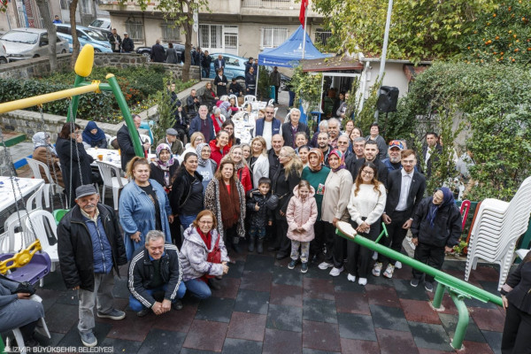 Mahallede yaşayan yurttaşlar arasındaki dayanışmadan çok etkilendiğini söyleyen Başkan Soyer, “Burayı görünce içim açıldı. O kadar mutlu oldum ki. Burada küçücük parkta siz bambaşka bir şey yapmışsınız. Çocuklarımız, büyüklerimiz bir araya gelmişsiniz. Birlikte dayanışma içinde güler yüzle, sağlıkla bir aradasınız. Çok kıymetli. Herkes sonunda bir lokmayı boğazından geçiriyor ama bunu birlikte yapmak, dertleri sevinçleri paylaşmak çok kıymetli. Hepinizi tebrik ediyorum. Siz böyle güler yüzle bir araya geldikçe, biz İzmir Büyükşehir Belediyesi olarak sonuna kadar sizlerin yanında olacağız. Gücümüz yettiğince sağlığınızı, güler yüzünüzü korumak için elimizden geleni yapacağız” diye konuştu.