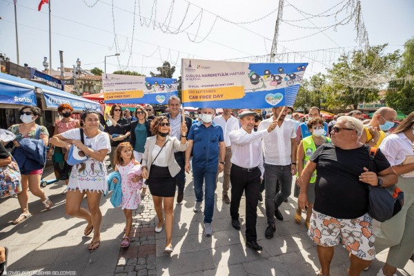 “Sağlıklı ve Güvenilir Hareketlilik” temasıyla 16-22 Eylül tarihleri arasında kutlanan Avrupa Hareketlilik Haftası’ndaki yürüyüşe İzmir Büyükşehir Belediye Başkanı Tunç Soyer’in eşi Neptün Soyer, İzmir Büyükşehir Belediyesi Başkan Vekili Mustafa Özuslu ve eşi Müyesser Özuslu, Gaziemir Belediye Başkanı Halil Arda ile eşi Deniz Arda, Bayraklı Belediye Başkanı Serdar Sandal ile eşi Aylin Sandal, Foça Belediye Başkanı Fatih Gürbüz ile eşi Seçil Gürbüz, Güzelbahçe Belediye Başkanı Mustafa İnce ile eşi Nilüfer İnce, Seferihisar Belediye Başkanı İsmail Yetişkin, Torbalı Belediye Başkanı Mithat Tekin ve eşi Fatma Tekin, Menderes Belediye Başkanı Mustafa Kayalar ve eşi Aslı Kayalar, Beydağ Belediye Başkanı Feridun Yılmazlar, İzmir Büyükşehir Genel Sekreter Yardımcıları Ertuğrul Tugay ve Yıldız Devran, bürokratlar, meclis üyeleri, sivil toplum örgütlerinin temsilcileri ve gönüllüler katıldı.