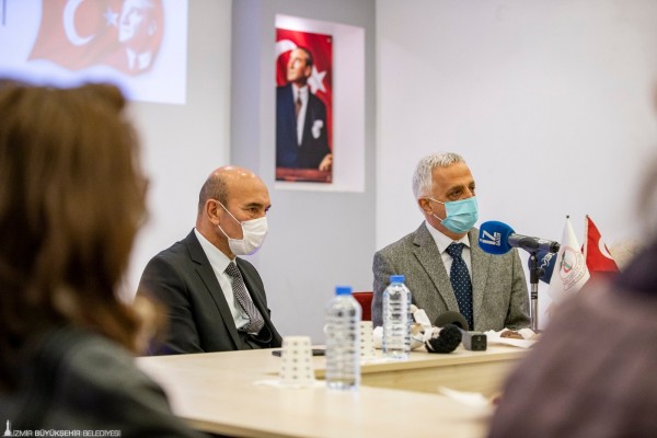 İzmir Tabip Odası Başkanı Op. Dr. Lütfi Çamlı ise şöyle konuştu: “Pandemi süresince ne yazık ki bizlerin talep ettiği gibi bir pandemi yönetimi olmadı. Şeffaf bir süreç götürülmedi. Bu süreçte Türk Tabipler Birliği, Tabip Odaları başta olmak üzere sağlık örgütleri bu sürecin dışında tutulmaya çalışıldı. Ama gerek Türk Tabipler Birliği gerekse İzmir Tabip Odası bu süreçte toplum sağlığını önceleyerek, halkın sağlık hakkını savunmak adına doğruları söyledi. Savunurken de zaman zaman hedef haline getirildiler. Biz bu süreci dayanışmayla, İzmir’deki tüm toplum sağlığını öncüleyen yapılarla aşmaya çalıştık. Süreçte İzmir Büyükşehir Belediyesi’nin çok büyük desteğini gördük. Gerek kişisel koruyucu ekipmanlarımızın temininde, gerek sağlık çalışanlarının barınma ve ulaşım sorunlarının çözümünde, daha birçok sorunda İzmir Büyükşehir Belediyesi, Karşıyaka Belediyesi, Konak Belediyesi yanımızda oldu. Dayanışma bizleri gerçekten çok mutlu etti. Ne yazık ki 387 sağlık emekçisini kaybettik. Zor günlerin dayanışmayla aşılacağına inanıyoruz.”