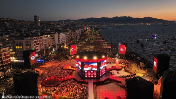 İzmir’in 100. yıl kurtuluş coşkusu 9 Eylül’de gün boyu süren etkinliklerin ardından akşam zirve yaptı. Alsancak Limanı’ndan başlayıp Gündoğdu Meydanı’nda sona eren Fener Alayı yürüyüşünün ardından İzmirliler, Kordon’u adeta gelincik tarlasına çevirdi. Alandaki izleyiciler DJ Ersin ile birlikte şarkılar söyledi. Coşkuya Türk bayrakları ve telefon ışıkları eşlik etti. Saatler 21.00’i gösterdiğinde Türkiye’de bugüne dek sergilenmiş en büyük sahne şovlarından biri başladı. 180 dansçının katılımıyla artırılmış gerçeklik destekli işgal ve kurtuluşun canlandırıldığı interaktif teatral gösteri gönüllere taht kurdu. Toplam bin 300 metrekare led ekranın kullanıldığı şov, bu bakımdan Türkiye tarihinde yapılan en büyük prodüksiyon oldu. İzmir Büyükşehir Belediye Başkanı Tunç Soyer ve eşi Neptün Soyer’in ev sahipliğindeki tarihi gösteriye Cumhuriyet Halk Partisi Genel Başkanı Kemal Kılıçdaroğlu ile eşi Selvi Kılıçdarğolu, CHP genel başkan yardımcıları, milletvekilleri, il ve ilçe belediye başkanları, siyasi partilerin başkanları ile temsilcileri, devlet erkanı, sivil toplum kuruluşları, odalar, derneklerin başkanları ile temsilcileri, sanatçılar, gazeteciler de katıldı.