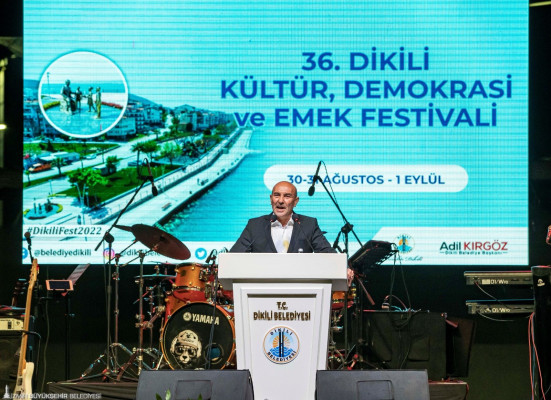 Açılış töreninde konuşan Dikili Belediye Başkanı Adil Kırgöz ise “Dikili Festivali Türkiye’nin düşünce hayatına mal olmuş bir festivaldir. Dikili Festivali’nde her yıl Türkiye’nin gündemini ele alacak konuları konuşacağız. Gerek pandemide gerekse sonrasında belediyelerimiz tıkır tıkır çalışıyorsa bunun en önemli ayaklarından biri de kültür sanat etkinlikleridir. Ülkemiz büyük bir krizden geçiyor. Bu kriz her bir haneyi nasıl vuruyorsa belediyelerimizi de derinden etkiliyor. Artan maliyetler, bozulan dengeler, büyüyen uçurumlar, belediyelere yeni sorumluluklar yüklüyor. Ancak bunların hiçbirini bahane etmedik, etmeyeceğiz. Pandemi dönemindeki gibi destan yazmaya devam edeceğiz. Her belediye başkanımız aynı inanç ve azimle hareket ediyor. Biz de Dikili’de hiçbir çocuğun yatağa aç girmemesi çalışmaya devam edeceğiz.