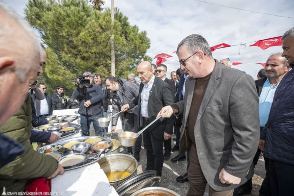 Alanda köy halkıyla sohbet eden Başkan Soyer, duaların ardından imece usulü pişen kazanlardan hayır dağıtımı yaptı. Yemek dağıtımının ardından köylülerle sofraya oturan Başkan Soyer, hayır lokması yiyerek, “Bu geleneğin devam etmesine katkı sunan herkese şükranlarımı sunuyorum, tebrik ediyorum. Allah kabul etsin, hepinizden Allah razı olsun” dedi.
