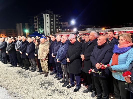 Başkan Tunç Soyer, İzmir Büyükşehir Belediyesi’nin genel koordinasyonunu üstlendiği Osmaniye’de hayatını kaybedenler için düzenlenen anma törenlerine katıldı. CHP Milletvekilleri ve partililerle beraber ilk olarak Metin Tamer Sitesi bölgesinde düzenlenen törene katılan Başkan Tunç Soyer, burada hayatını kaybedenler anısına enkazın yerine karanfil bıraktı. Hemen sonrasında ise İstasyon Caddesi’nde gerçekleşen anma törenine katılan Başkan Soyer, depremzedelerle bir araya geldi.