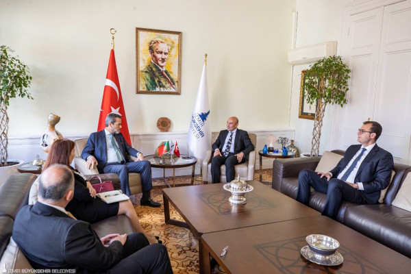 İzmir Büyükşehir Belediye Başkanı Tunç Soye, Portekiz’in Ankara Büyükelçisi Jaime Van Zeller Leitão ile bir araya geldi. Soyer “Başka Bir Tarım Mümkün” vizyonu doğrultusunda Eylül ayında düzenlenecek uluslararası gastronomi fuarı Terra Madre Anadolu İzmir 2022’nin hazırlıklarının sürdüğünü belirterek büyükelçiyi fuara davet etti.