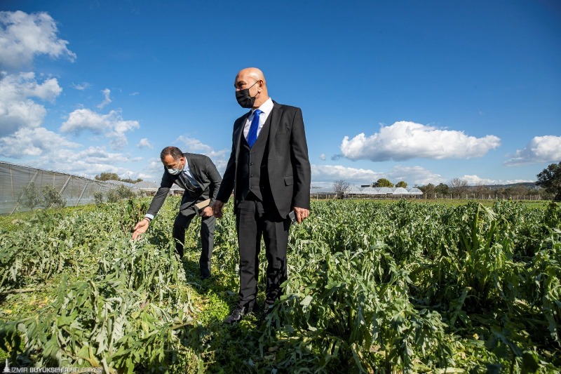 Başkan Soyer’den dolu nedeniyle zarara uğrayan üreticilere ziyaret