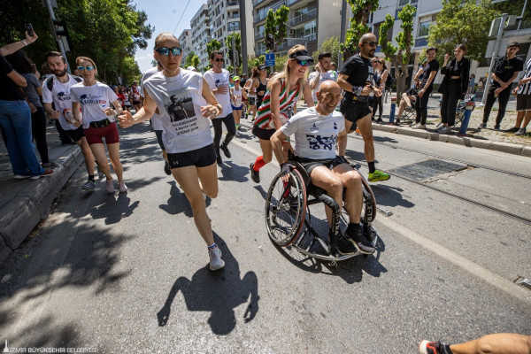 İzmir Büyükşehir Belediye Başkanı Tunç Soyer, omurilik felcinin tedavisine yönelik araştırmalara fon sağlamak amacıyla 8 ülkede aynı anda düzenlenen Wings for Life World Run 2022’ye katıldı. Kültürpark’ın Lozan Kapısı’ndan startı verilen yarışa tekerlekli sandalyeyle katılan Büyükşehir Belediye Başkanı Tunç Soyer, Alsancak Garı’na kadar koşuculara eşlik etti. Yarışta koşucular ve tekerlekli sandalyeli yurttaşlar birlikte ter döktü. Koşuda İzmir Büyükşehir Belediyesi Genel Sekreter Yardımcısı Ertuğrul Tugay da yer aldı. Yarışı bırakmasının ardından koşucuları selamlayarak yürüyen Başkan Soyer’e yurttaşlar büyük ilgi gösterdi.