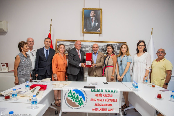 İzmir Büyükşehir Belediye Başkanı Tunç Soyer, Gediz Havzası Erozyonla Mücadele, Ağaçlandırma, Çevre ve Kalkınma Vakfı (GEMA) Genel Başkanı Şener Kilimcigöldelioğlu ve vakıf üyelerini Egemenlik Evi’ndeki toplantı salonunda ağırladı. Gediz Havzası sorunları ve çözüm önerilerinin konuşulduğu ziyarette ayrıca Gediz Havzası’nın UNESCO Dünya Miras Listesi’ne de girmesi gerektiği dile getirildi.
