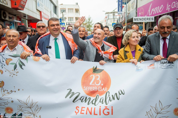 Seferihisar Belediye Başkanı İsmail Yetişkin de bir kez daha ilçeyi turuncuya boyadıklarını belirterek, “Mandalina şenliği ile verimli topraklarımıza sahip çıkmayı, üretmeyi, ülkemizin geleceği için tarımdan vazgeçmeyişimizi kutluyoruz. Bir araya geldiğimizde birbirimize güç ve neşe verişimizi kutluyoruz. Bu yıl turuncu bayramımız biraz buruk. Mandalina üretimimizin neredeyse yarısından fazlasını dolu vurdu. Hem ziyan olan mandalinalar için hem de bir yıl boyunca emek veren tüm çiftçilerimiz için çok üzgünüm. Fakat iklim krizi kaynaklı doğal afetler bitecek gibi görünmüyor. Bugün fırtına vurdu, önceki gün dolu vurdu derken tarımsal üretimimiz durma noktasına gelecek. Burada bir mandalina üreticisi olarak devlete sesleniyorum. Tarımsal üretim ve çiftçinin korunması için bir an önce etkili politikaların başlatılması gerekiyor. Artık kaybedilecek zaman kalmadı” dedi.