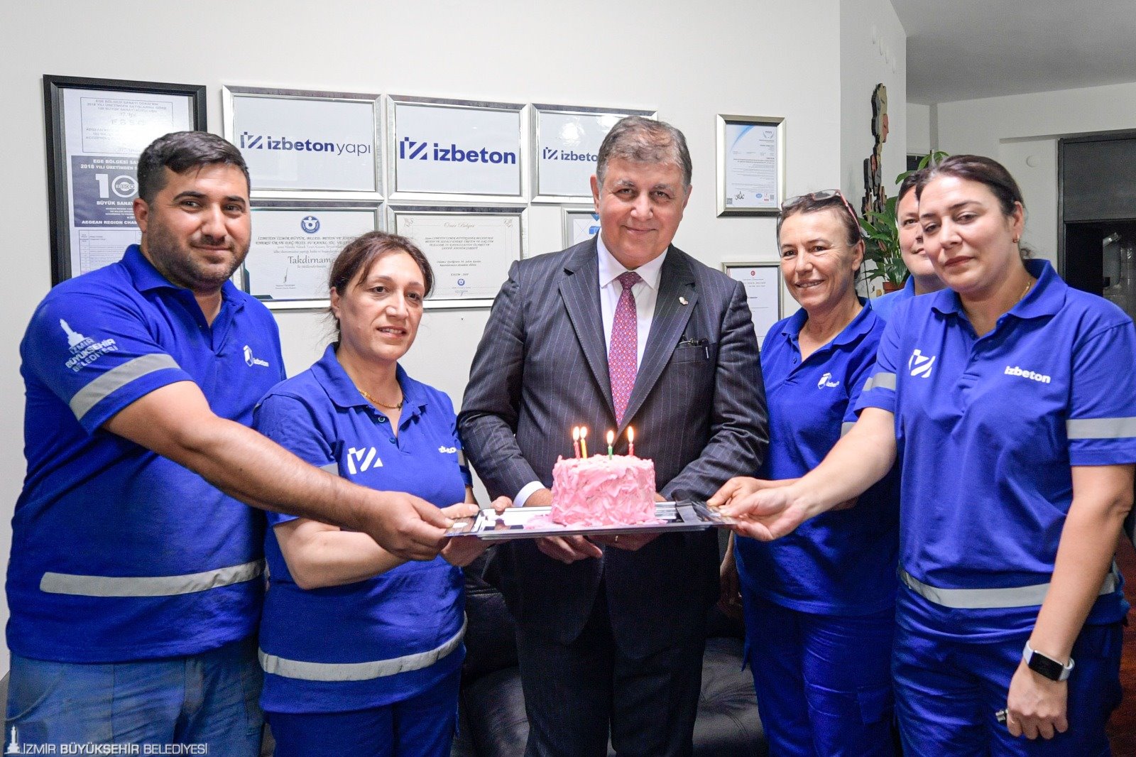 İzmir Büyükşehir Belediye Başkanı Dr. Cemil Tugay’ı duygulandıran ve mutlu eden anlar da yaşandı. Başkan Tugay’ın 58’inci yaş günü nedeniyle pasta getiren işçiler, Tugay’ın doğum gününü kutladı. Tugay da mumları söndürerek işçilere teşekkür etti.