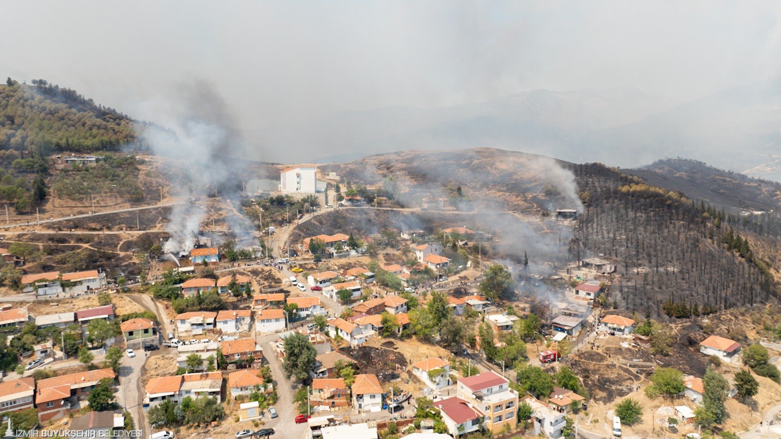 İzmir İtfaiyesi, 730 personel, 100’e yakın araç ve belediyenin diğer birimleri ile birlikte yangın söndürme çalışmalarını sürdürüyor. Onur Mahallesi’nin bir kısmı boşaltıldı. Sancaklı Köyü ve Doğançay’da çok sayıda ev hasar gördü. Karşıyaka Seyir Tepesi’nin alt tarafında yer alan Karşıyaka Belediyesi’nin şantiyesi ile özel bir işletmeye bağlı ayrıştırma tesisine yangın ulaştı. Birçok işyeri yanarken, yoğun kara dumanlar, gökyüzünü kapladı. Sanayi sitesinin bir bölümü boşaltıldı. Veteriner İşleri ve Halk Sağlığı Daire Başkanlığı ekipleri Karşıyaka ve Bayraklı belediyelerinin barınaklarındaki sokak hayvanlarının tahliyesini yaptı.