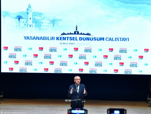 Cumhuriyet Halk Partisi Türkiye’nin deprem gerçeğini göz önünde bulundurarak yaşanabilir kent kültürünün korunacağı alternatif kentsel dönüşüm modellerini belirlemek için “Yaşanabilir Kentsel Dönüşüm Çalıştayı” düzenledi. İzmir’in Karşıyaka ilçesinde Deniz Baykal Kültür Merkezi’nde düzenlenen çalıştayın açılış konuşmalarını Cumhuriyet Halk Partisi Genel Başkanı Kemal Kılıçdaroğlu, CHP Genel Başkan Yardımcısı Ahmet Akın ve İzmir Büyükşehir Belediye Başkanı Tunç Soyer yaptı. İzmir Büyükşehir Belediyesi’nin Örnekköy’deki kentsel dönüşüm alanında yapımına başlayacağı 2. etap kapsamındaki konut ve işyerlerinin temelini atan Kılıçdarolğu temal atma töreni sonrası çalıştaya katıldı.