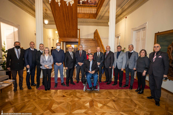 Belediye İş Sendikası’nın İzmir şubelerinde örgütlü işçiler, 9 Eylül’ün 100’üncü yılı kutlamalarında Atatürk’ün Nutuk kitabından alıntı yaptığı için hakkında soruşturma başlatılan İzmir Büyükşehir Belediye Başkanı Tunç Soyer’e destek verdi. Ankara’da bulunan Başkan Soyer, işçilerle canlı bağlantı aracılığıyla konuştu. Soyer, “Daha gidecek yolumuz var. Bizi mahkum etmeye çalışanlar görsün ki yalnız değiliz” dedi.