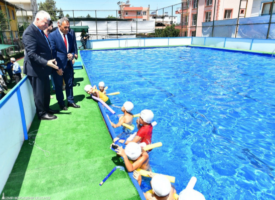 İzmir Büyükşehir Belediye Başkanı Tunç Soyer’in sporu kentin tamamına yayma hedefi doğrultusunda geçen yıl üç noktada kurulan portatif havuz sayısı bu yaz 7’ye çıktı. Konak’ta Pazaryeri ve Kadifekale, Bornova’da Meriç, Çiğli’de Yakakent, Beydağ’da Leylak, Menemen’de İsmet İnönü ve Kiraz’da Yeni mahallelerindeki havuzlarda 6 ile 13 yaş arasındaki çocuklara yüzme eğitimi veriliyor.