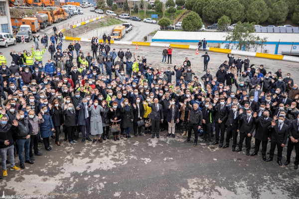 Fuar İzmir’de bulunan ESHOT Genel Müdürlüğü’nü ziyaret eden İzmir Büyükşehir Belediye Başkanı Tunç Soyer’i, ESHOT Genel Müdür Vekili Turgay Akkaya karşıladı. Burada personelin yeni yılını kutlayan Başkan Soyer, Türkiye’nin zor bir dönemden geçtiğini, İzmir’de de 3 yıldır her türlü felaketi yaşadıklarını ancak hepsinin altından el ele verdikleri için kalktıklarını söyledi. Belediye çatısı altında çalışanların işini düzgün yapma gayreti taşıdığını ifade eden Soyer, “O nedenle tek tek hepinize minnettarım. Hepinizle gurur duyuyorum, iftihar ediyorum. Sizlerle beraber çalışmaktan çok büyük mutluluk duyuyorum. Her biriniz için söyleyecek çok şeyim var. Ama şunu bilin ki; sizleri ailem gibi görüyorum. Çalışma koşullarınızı, huzurunuzu iyileştirmek için elimden ne geliyorsa yapmaya devam edeceğim” şeklinde konuştu.