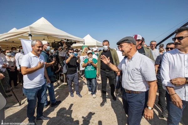 Bu karanlık tablo, bir kader değil diyen İzmir Büyükşehir Belediye Başkanı Tunç Soyer, “Başka bir tarım mümkün” diyerek, şunları söyledi: “Bizim başka bir tarım mümkün felsefemizin 2 temel aksı var. Birincisi kuraklıkla mücadele, ikincisi yoksullukla mücadele. Kuraklıkla da mücadele ederek yoksullukla da mücadele ederek yepyeni bir ürün deseniyle bu bereketli toprakların, bolluk üreten toprakların eski haline getirilmesi, geleceğe taşınması mümkün. Küçükbaşı desteklemeye devam edeceğiz. Başka bir tarım mümkün ve biz bu tarımı mümkün kıldıkça, toprakların bereketi bolluğunu iade edeceğiz.”
