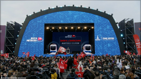 Cumhuriyet Halk Partisi (CHP) Genel Başkanı Kemal Kılıçdaroğlu’nun katıldığı kentin en büyük yatırımı Buca Metrosu’nun temel atma töreni, kamusal bir etkinlikte ilk kez açık havada ve canlı olarak artırılmış gerçeklikle (augmented reality) desteklenen bir sunuma sahne oldu.