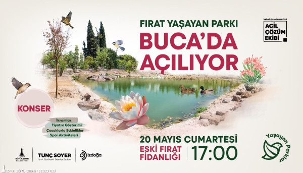Buca’ya nefes aldıracak 30 bin metrekarelik bir park alan olarak tasarlanan Fırat Yaşayan Parkı 20 Mayıs Cumartesi günü halkla buluşuyor. 35 yıldır fidan deposu olarak kullanılan, üç futbol sahası büyüklüğündeki Fırat Fidanlığı, İzmir Büyükşehir Belediye Başkanı Tunç Soyer’in İzmir’de 35 Yaşayan Park oluşturma programının bir parçası olarak İzmir halkının kullanımına açılıyor.