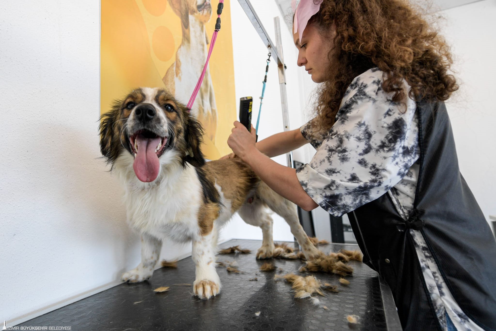 İzmir Büyükşehir Belediyesi öncülüğünde Pet Kuaförler Derneği ve gönüllü ekibiyle Bornova Gökdere’deki Pako Sokak Hayvanları Sosyal Yaşam Kampüsü’nde sahipsiz köpekler tıraş edilerek yıkandı.