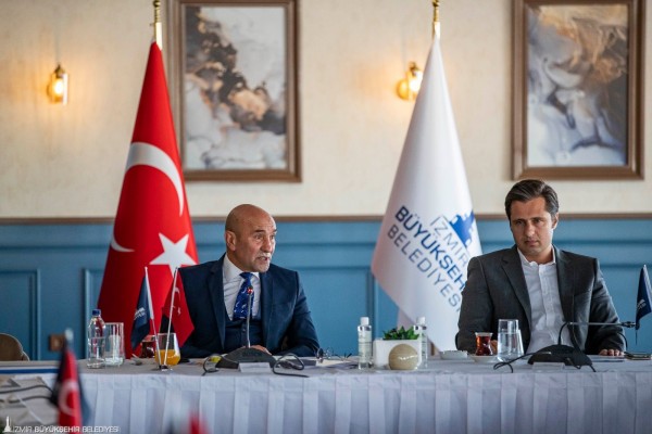 İzmir Büyükşehir Belediye Başkanı Tunç Soyer ile CHP İl Başkanı Deniz Yücel, İzmir Marina’da CHP’li ilçe belediye başkanlarıyla bir araya geldi. Yerel yönetimler arasında işbirliğini pekiştirmek ve belediyelerin gelecek döneme ilişkin projelerini görüşmek için düzenlenen toplantının açılışında konuşan Başkan Tunç Soyer, ilçe belediye başkanlarının görevde geçen iki yılını değerlendireceklerini belirtti. Yine yerel yönetimlerin gelecek iki yıla yönelik projelerini de konuşmak istediklerini vurgulayan Soyer, belediye başkanlarının, İzmir Büyükşehir Belediyesi’nden taleplerini, beklentilerini de dinlemek istediklerini aktardı.