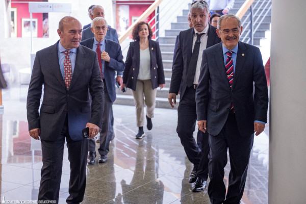 Türkiye’de son dönemde sanatçıların yaşadığı sorunlara değinen Başkan Soyer, “Biz bu ülkede konser yasakları, linç kampanyaları, sanatçıların hukuksuz biçimde yargılanması, ev hapsi gibi sanata karşı yapılan yüzlerce adaletsizliğe şahit olduk. Oysa sanatı ve sanatçıyı kalıplara sokamaz, ehlileştiremezsiniz. Sanatın özünde, sanatçının mayasında; tekliğe karşı çokluk, baskı ve zorbalığa karşı özgürlük ve adalet duygusu yer alır. Bu yüzden, Türkiye’de çok yakında yeniden kardeşlik, barış ve demokrasi tesis edilecekse bunda sanatçıların çok büyük payı olacak” diye konuştu.