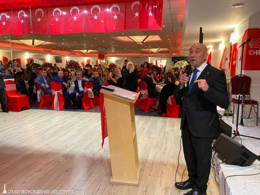 İzmir Büyükşehir Belediye Başkanı Tunç Soyer, 31 Ekim-12 Kasım 2021 tarihlerinde düzenlenen 26. BM İklim Değişikliği Taraflar Konferansı’na (COP26) katılmak üzere gittiği İskoçya’nın Glasgow kentinde CHP İngiltere Birliği’nin düzenlediği Cumhuriyet Balosu’na onur konuğu olarak katıldı. Büyük bir katılımın ve coşkunun olduğu baloda konuşan Başkan Tunç Soyer sözlerine “Cumhuriyetimizin 98’inci yaşını bugün Londra’da sizlerle kutlamanın mutluluğu içerisindeyim. Hepinize İzmir’in selamını getirdim” diyerek başladı. Cumhuriyet değerleri ve demokrasinin önemine değinen Başkan Soyer “Demokrasi beş yılda bir sandığa gidip oy kullanmaktan ibaret değildir. Demokrasi, her an her yerde birlikte yaşamanın huzurunu sağlayan düzendir. Diri vicdanlarla toplumun huzurunun teminat altına alınmasıdır. Bunu başaracak olan bu ülkenin kadınları, gençleri, çocukları, bu ülkenin geleceği için burnunun direği sızlayan tüm yurttaşları, yani burada bulunanlar, yani bizleriz. Bir başkası değil” dedi.