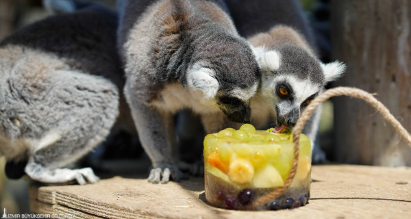 Buzlu yiyecek kalıplarında hayvanın türüne göre et veya çeşitli meyvelerle yiyeceklerin servis edildiğini belirten İzmir Doğal Yaşam Parkı Müdürü Şahin Afşin, “Hayvanlar bu sayede hem sağlıklı bir şekilde besleniyor, hem de serinliyor. Lemurlar, ayılar ve sırtlanlar bu soğuk ziyafetin tadını doyasıya çıkarırken, Bengal kaplanı daha çok yüzerek serinlemeyi tercih ediyor. Fil ailesi ise buzlu meyvelerini afiyetle yedikten sonra soğuk suyun altında keyif yapıyor. Mutfağımızda biyologlar tarafından özel menüler oluşturuluyor. Yazın ziyaretçiler Tropik Merkez’i gezmeyi tercih ediyor. Çünkü yaz ve kış burada sıcaklık sabit ve 26 derece” dedi.