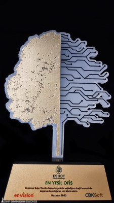 İzmir Büyükşehir Belediyesi ESHOT Genel Müdürlüğü, beş yıldır uyguladığı Elektronik Belge Yönetim Sistemi ile öne çıktı. Farklı sektörlerde 300 binden fazla kullanıcıya hizmet veren enVision firmasının kâğıt tasarrufunu ölçtüğü araştırmada üst sıralarda yer alan ESHOT’a, 5 Haziran Dünya Çevre Günü’nde “En Yeşil Ofis” ödülü verildi.