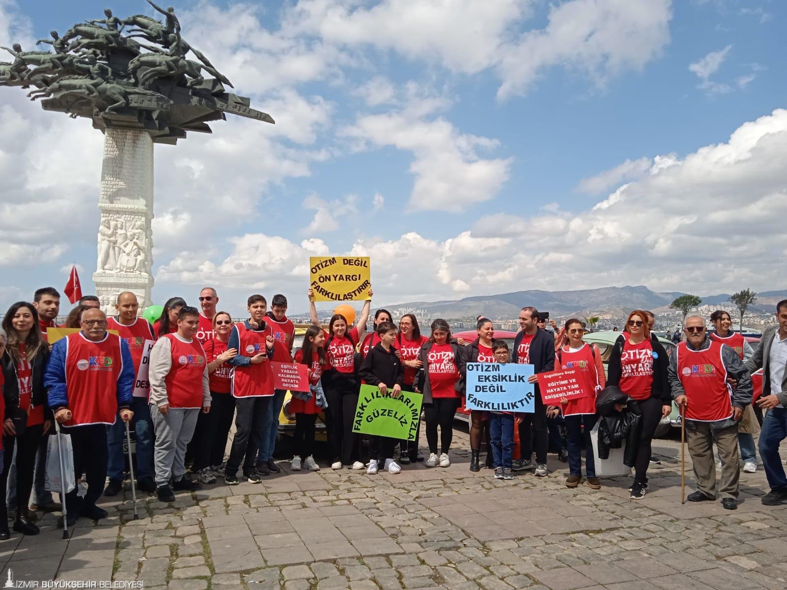 İzmir Büyükşehir Belediyesi’nin desteğiyle İzmir Otizm Orkestrası ve Korosu, Mavi Işık Özel Eğitim ve Rehabilitasyon Merkezi, KEDİ Otizm Derneği, ODER Otizm Derneği, Urla Otizmle Yaşam Derneği, Otizm Federasyonu ve Nar Taneleri Derneği’nin yer aldığı İzmir Otizm Topluluğu, Otizm Farkındalık Haftası nedeniyle “Farkındalık için Adım At” etkinliği düzenledi. Otizmli bireyler ve ailelerinin yaşadığı sorunların anlatıldığı ve bu kapsamda taleplerin yinelendiği etkinlikte Gündoğdu Meydanı’nda toplanılarak Vosvos korteji eşliğinde Cumhuriyet Meydanı’na yüründü. Yürüyüşte, çok sayıda vatandaş ellerinde dövizler taşıyarak sloganlar attı. Etkinlikte Cumhuriyet Meydanı’nda yer alan Atatürk Anıtı’na çelenk sunulurken, kurulan sahnede İzmir Otizm Orkestrası ve Korosu, Sıradışı Çocuklar ve otizmli çocuklar ile gençlerin solo konserleri verildi. Ayrıca İzmir Büyükşehir Belediyesi Sosyal Hizmetler Dairesi Başkanlığı Engelli Çalışmaları Şube Müdürlüğü’nde görevli spor ve dans eğitmeni Ayşen Yersel eşliğinde dans gösterisi yapıldı.