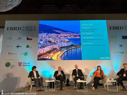 İzmir Büyükşehir Başkanı Tunç Soyer Viyana’da 20-21 Ekim tarihleri arasındaki Avrupa İmar ve Kalkınma Bankası (EBRD) Yeşil Şehirler Konferansı’na katıldı. EBRD Yeşil Şehirler Programı’na dâhil olan şehirlerin yöneticilerinin ilk kez fiziki olarak bir araya geldiği “Sermaye Piyasaları” oturumunda konuşan Başkan Soyer, İzmir’in Avrupa İmar ve Kalkınma Bankası hibesiyle Yeşil Şehir Eylem Planı’nı Türkiye’de ilk hazırlayan kent olduğunu belirterek sözlerine başladı. Soyer, “İklim krizi nedeniyle hasta bir gezegende yaşıyoruz. Bu nedenle dünyaya bakış açımızı değiştirmemiz gerekiyor. Biz doğadan uzaklaşıp doğa kanunlarına aykırı hareket ettikçe eşitsizlikler artıyor. İzmir’de hayata geçirdiğimiz projelerde başarı kriterimiz kentin doğasıyla, insanıyla uyumlu işler yapmaktı. İzmirlileri doğayla yeniden buluşturan Yaşayan Parklar projemiz de, tarımda su tüketimini azaltacak ürünleri desteklememiz de bu anlayışın bir parçasıdır” dedi.