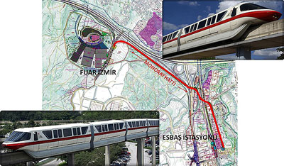 Yükseltilmiş kolonlara yerleştirilecek kirişler üzerinde çalışacak monoray sistemi, İZBAN’ın ESBAŞ istasyonundan başlayacak ve Akçay Caddesi’ni keserek çevreyolu-Gaziemir Kavşağı-çevreyolu paralelinden devam ederek Fuar İzmir’e ulaşacak. Monoray 2.2 kilometrelik gidiş-geliş çift hatlık güzergahta İZBAN ve yeni fuar alanı arasında kesintisiz ulaşım sağlayarak yolcu taşıyacak. Fuar İzmir kompleksine gelmek isteyen yolcular, İZBAN ile ESBAŞ istasyonuna geldikten sonra monoray sistemi ile Fuar alanına ulaşabilecek. Ziyaretçiler, fuar dönüşünde de yine aynı sistemi kullanabilecek. Dünyanın gelişmiş kentlerinde örnekleri görülen monoray, Türkiye’de ilk kez İzmir’de kurulmuş olacak.