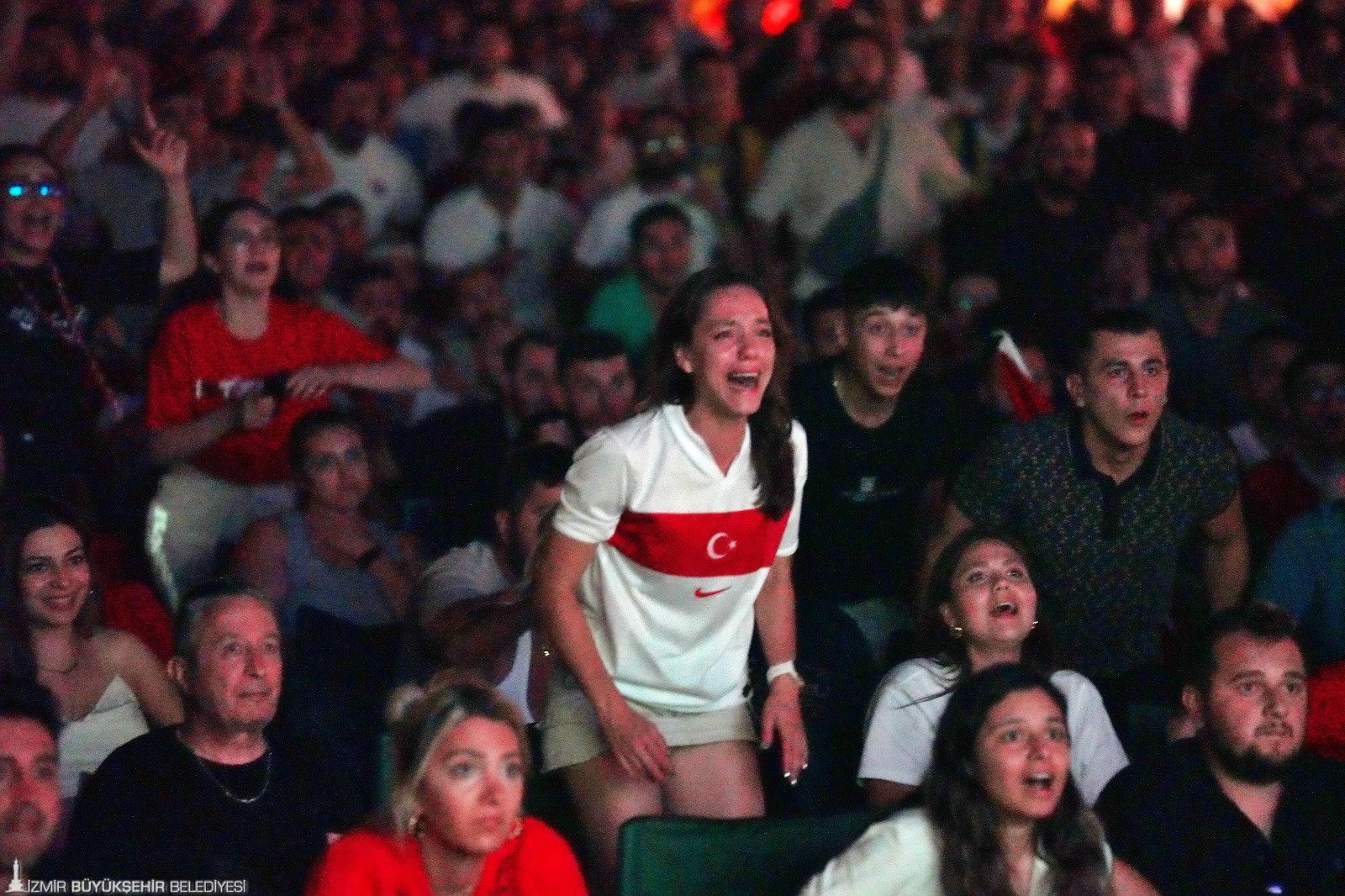 Gündoğdu Meydanı’nda kurulan dev ekran önünde toplanan kalabalık, tezahüratlarla milli takıma destek verdi. Göztepe Denizaltı Parkı ve Bostanlı Yasemin Kafe önündeki ekranlarda da yoğun bir ilgi vardı. İzmir Büyükşehir Belediyesi’nin bu organizasyonu, İzmirlilere birlikte maç izleme keyfini yaşatırken, aynı zamanda milli takıma olan sevgiyi ve desteği de gözler önüne serdi.