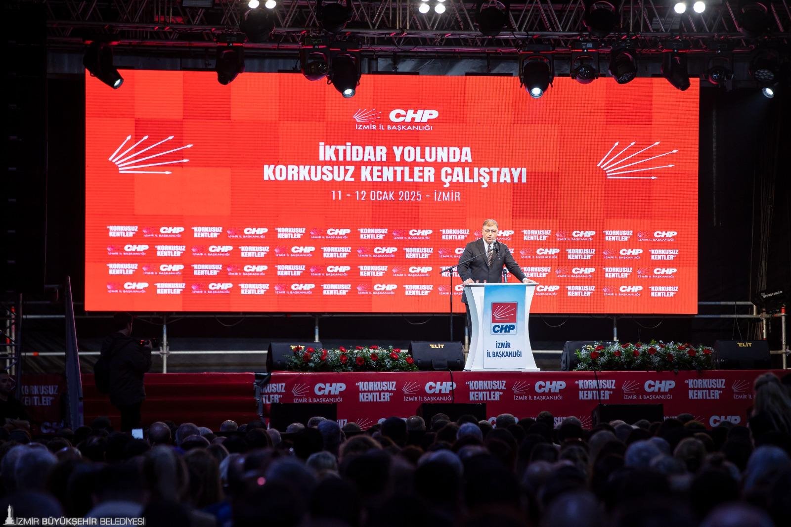 CHP İzmir İl Başkanı Şenol Aslanoğlu ise, “Bu çalıştay korkusuz başkanların, örgütün çalıştayı. İzmir’i savaş meydanı yaptıklarını görüyoruz. İzmir’e olan kinlerini biliyoruz. Neden mi? Çünkü biz İzmirliler genel seçimde onlara 1 milyon 20 bin oy farkı attık, hazmedemiyorlar. Dertleri yeni değil. Baskılarla, bizleri gözaltına aldırmakla, bizlere dava açmakla, görevden almakla tehdit ettiklerini görüyoruz. Sizden korkan sizin gibi olsun” dedi.