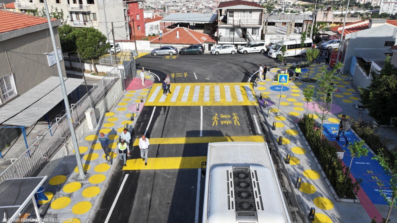 Ayrıca yeni düzenlemede oturma bekleme alanları, bitkilendirme çalışmaları ve zemin boyamasıyla oluşturulan çocuk oyun alanları ile okul çevresi nitelikli hale getirildi. Oluşturulan tasarımla, araç parkı ve büyük taşıtların okul çevresinde beklemesi önlenerek öğrenci güvenliği artırıldı. Okul çevresi renklendirilerek, çocuklar için eğlenceli hale getirildi. Çalışmalarla birlikte, bölgedeki çocukların günlük ulaşım güvenliği artırılırken aynı zamanda mahalle halkı için daha yaşanabilir bir kamusal alan oluşturuldu. Güzel İzmir Hareketi çerçevesinde kentin farklı bölgelerinde kamusal alan odaklı çalışmalar sürdürülecek.