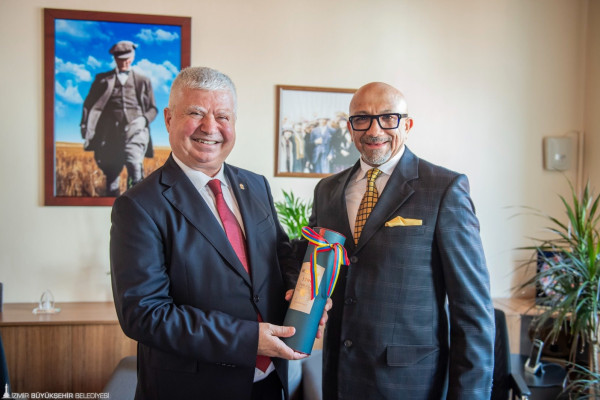 Konuşmaların ardından heykel alkışlar eşliğinde açıldı. Her köşesinde ayrı bir anlam ve öğreti taşıyan heykel düzenlemesini yakından inceleyen Başkan Soyer, heykelin mimarı Esen Keçecioğlu’na teşekkür etti.