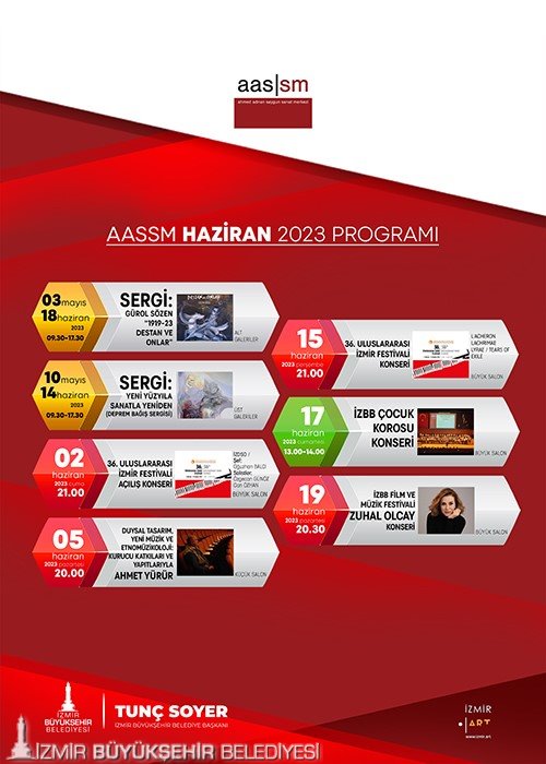 Türkiye’nin en prestijli kültür-sanat mekanlarından olan İzmir Büyükşehir Belediyesi Ahmed Adnan Saygun Sanat Merkezi (AASSM), Haziran ayında da çok önemli kültür-sanat etkinliklerine ev sahipliği yapacak.