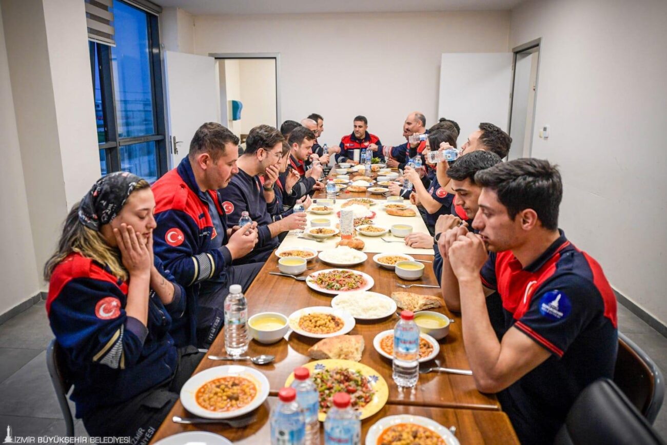 Torbalı Çaybaşı İtfaiye Grubu’nda da itfaiye personeli bereketli ramazan sofralarında bir araya geliyor. Ancak hiçbir özel an onların görevinin önüne geçemiyor. Toplam 280 itfaiye personelinin görev yaptığı birimde ekipler iftar saatinde bile olası bir ihbara karşı tetikte bekliyor. Güney Bölge Amiri Türkay Kaptan İzmir İtfaiyesi’nin 7 gün 24 saat görev başında olduğunu vurgulayarak şunları söyledi: “İzmir Büyükşehir Belediyesi İtfaiye Dairesi Başkanlığı olarak insanların canını ve malını korumak için çalışıyoruz. Ramazan ayında iftar anında bile vaka çıkabiliyor. Böyle anlarda ekiplerimiz bir dakika bile durmadan görevine koşuyor. Döndüklerinde iftarlarına devam ediyorlar. Açlık ya da susuzluk bizim için önemli değil. Önceliğimiz her zaman yurttaşların can güvenliği.”