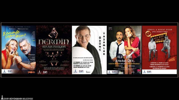 İzmir Büyükşehir Belediyesi, “Benimle Delirir misin?”, “Dans Tiyatrosu”, “Ödünç Yaşamlar”, “Ölü’n Bizi Ayırana Dek” ve “Hey Gidi Günler” tiyatro oyunlarını Temmuz ve Ağustos ayında İzmirlilerle buluşturacak. Ali Poyrazoğlu, Necmi Yapıcı, Ebru Cündübeyoğlu, Hakan Yılmaz, Süheyl Uygur ve Behzat Uygur gibi usta isimlerin yer aldığı oyunlar Aliağa, Beydağ, Konak, İnciraltı, Selçuk, Ödemiş, Torbalı gibi hem merkez hem de merkeze uzak ilçelerde İzmirlilerle ücretsiz buluşacak.