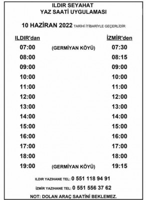 Ildır İzmir Dolmuş Saatleri ve Ücretleri