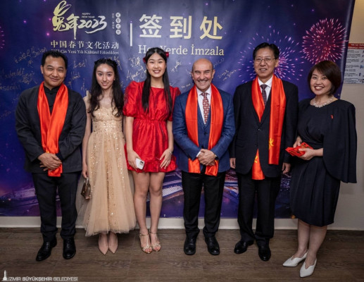 Çin’in Ankara Büyükelçisi Liu Shaobin ise Çin yeni yılının Çin için geleneksel bir bayram olduğunu belirterek “Her şey yepyeni olacak ve yeni başlangıçlar olacak demektir. Bu yıl Türkiye Cumhuriyeti’nin kuruluşunun 100’üncü yıldönümü. Her iki ülkenin kendi hayallerini gerçekleştirme yolunda birlikte hareket etmelerinin önemli olduğunu düşünüyorum. Türkiye’nin üçüncü büyük şehri olan İzmir, sanayi ve ticaret başta olmak üzere pek çok alanda Türkiye’nin ön sıralarında yer alıyor. İzmir Büyükşehir Belediyesi kardeş şehir ilişkileri kurarak önemli bir işbirliği hattı kurdu. Çin ve İzmir arasında pandemi sürecinde duran ilişkiler daha da canlanacak” diye konuştu.