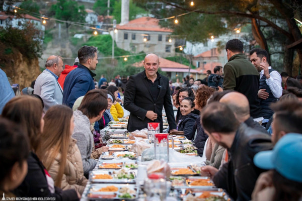 İzmir Büyükşehir Belediye Başkanı Tunç Soyer, Seferihisar Eski Orhanlı Köyü’nde Doğa Derneği, Seferihisar Belediyesi ve köy halkıyla imece usulü düzenlenen iftar yemeğine katıldı. Doğa Okulu bahçesindeki iftar yemeğine İzmir Büyükşehir Belediyesi Genel Sekreteri Barış Karcı, İzmir Büyükşehir Belediyesi Başkan Danışmanı Güven Eken, Doğa Derneği Yönetim Kurulu Başkanı Dicle Tuba Kılıç, muhtarlar, Doğa Derneği aktivistleri ve köylüler katıldı. Yoğun ilgiyle karşılaşan Başkan Tunç Soyer vatandaşlarla tek tek tokalaşarak, istek ve dileklerini dinledi.