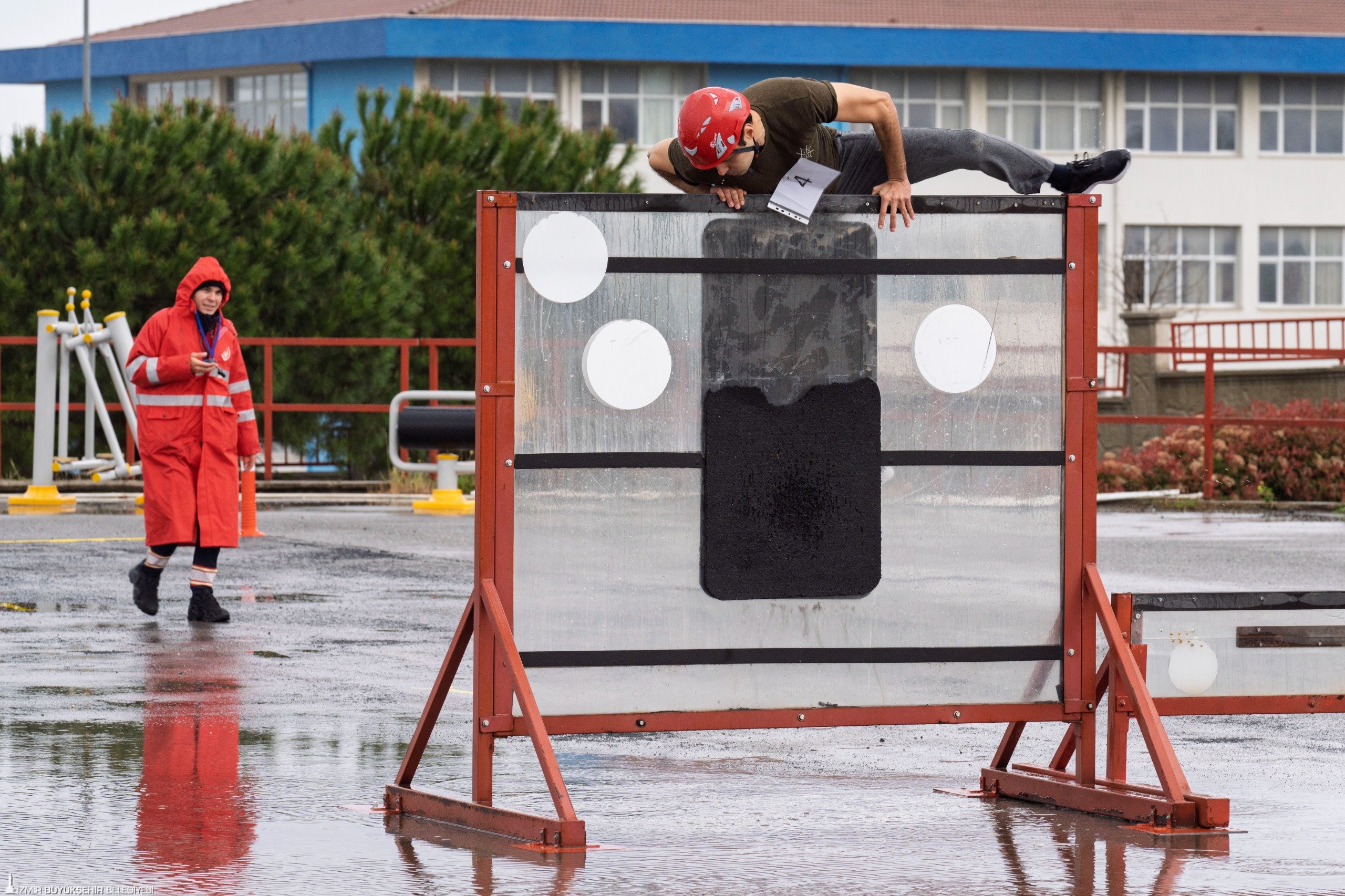 İzmir Büyükşehir Belediyesi İtfaiye Dairesi Başkanlığı’nın 154 memur alımı için açtığı sınava 2 bin 70 kişi başvurdu. Başvuru şartlarını taşıyan 759 aday 18 Nisan’a kadar Toros Eğitim Merkezi’nde uygulamalı sınavlara katılarak zorlu parkurlarda ter dökecek. Uygulama sınavının ilk gününde yağışlı havada mücadele veren adaylar, İzmir İtfaiyesi bünyesinde görev yapmak için kıyasıya yarıştı. İtfaiyeci adayları, zorlu yarışa engel tahtasını (zabor) aşarak başladı. Daha sonra uzunluğu 12 metre, genişliği 18 santimetreyi bulan denge tahtasında yürüyerek tünelden geçti. Fiziki yeterliliğin ölçülmesi için 33 metre koşunun ardından kurulu olan merdivenden kuleye tırmanarak en zorlu parkurları test eden adaylar, karanlık ve dumanlı odada yön bulmaya çalıştı, itfaiye araçlarının direksiyonuna geçti.
