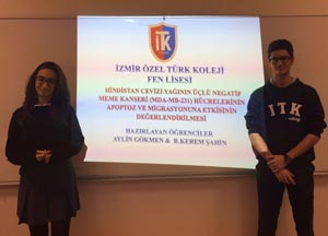 Türkiye genelinde Fen Bilimleri alanında 458 projenin katıldığı “Bayer Türk 3. Liseler Arası Bilim Yarışması”nda İzmir Özel Türk Koleji Bahattin Tatış Kampüsü Fen Lisesi 11/B sınıfı öğrencilerinden Aylin Gökmen ve Kerem Åžahin‘in hazırladığı “Hindistan Cevizi Yağının Üçlü Negatif Meme Kanseri Hücrelerinin Apoptoz ve Migrasyonuna Etkisinin DeÄŸerlendirilmesi” adlı proje ilk 10 okul arasına girmeyi baÅŸarmıştı.
