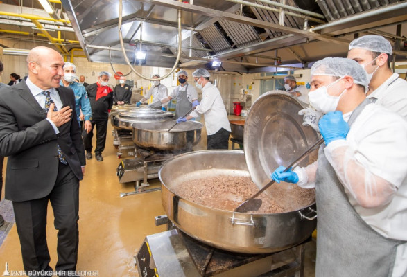 İhtiyaç sahiplerine ayrıca 3 milyon 673 bin kişilik sıcak yemek sunuldu. 11 Biz İzmir Dayanışma Noktası ve mobil ikram araçları dâhil 14 mahallede günlük 10 bin kişilik sıcak yemek dağıtıldı. Ramazan ayında 558 bin kişilik iftar yemeği, Kurban Bayramı’nda 7 bin haneye kavurma ve kemik suyu dağıtıldı. Giysi Otobüsü ve Giysi Noktası ile 141 bin parça giysi desteği sağlandı.