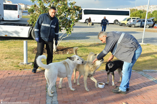 İzmir Büyükşehir Belediyesi Veteriner İşleri Şube Müdürü Umut Polat sokak hayvanlarını soğuk kış günlerinde yalnız bırakmadıklarını belirterek, “Özellikle yoğun soğukların olduğu, olumsuz hava koşullarının arttığı kış dönemlerinde mama desteğimiz artarak sürüyor. Yıllık olarak sokak hayvanlarının beslenmesi için 150 ton mama dağıtımımız gönüllüler ve görevlilerimiz eşliğinde devam ediyor. Mama miktarlarımızın alımı her geçen sene artarak devam ediyor. İlçelerimizdeki besleme çalışmalarını yerel hizmetler şube müdürlüklerimiz ve mahalle muhtarlarımız aracılığıyla yürütüyoruz. Ayrıca sivil toplum kuruluşları ve yerel hayvan koruma gönüllülerimizden destek almaktayız” dedi.