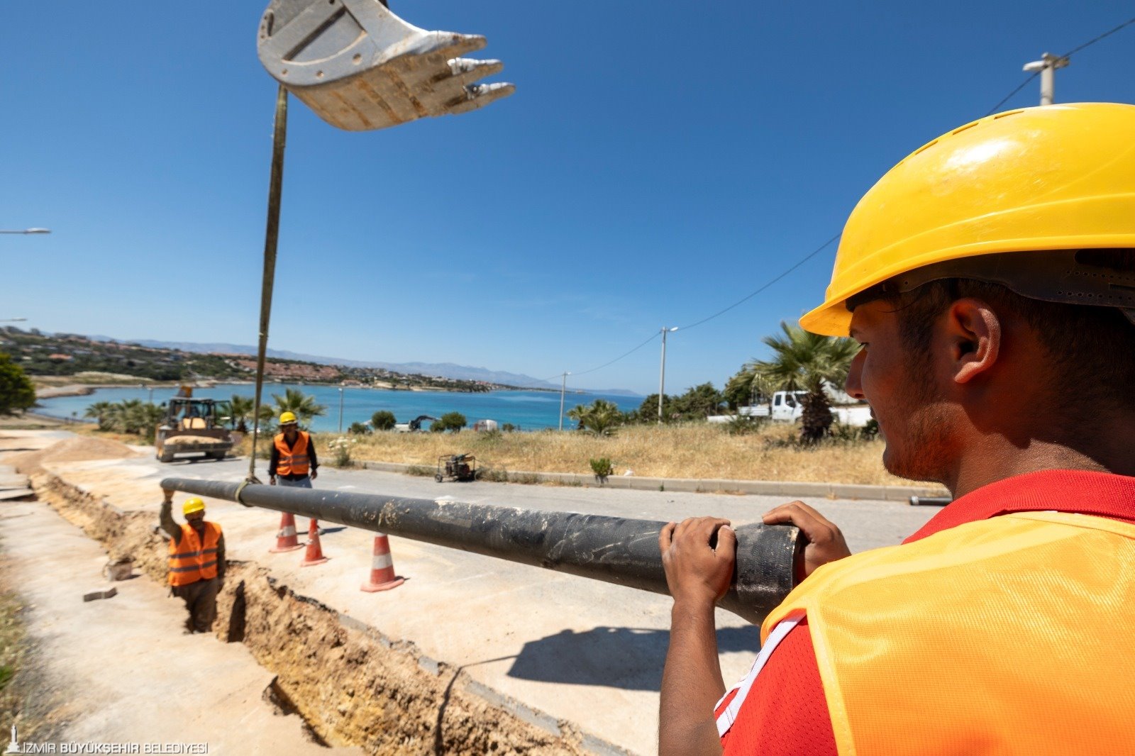 Proje kapsamındaki çalışmalar Dalyan Mahallesi’nde devam ediyor. Çeşme’deki 10 mahallede branşmanları ile beraber 350 kilometreye ulaşan hattın 175 kilometrelik kısmı tamamlandı. 3. Etap çalışmalarının da bitmesiyle beraber ilçede yaşanabilecek olası içme suyu sorunlarının önüne geçilecek.